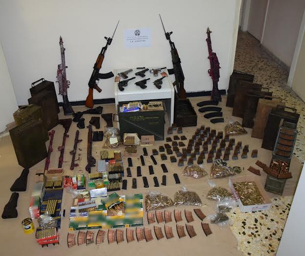 Κατασχέθηκαν πολεμικά τυφέκια τύπου «Kalashnikov», πιστόλια, περίστροφα, πλήθος φυσιγγίων κ.α.